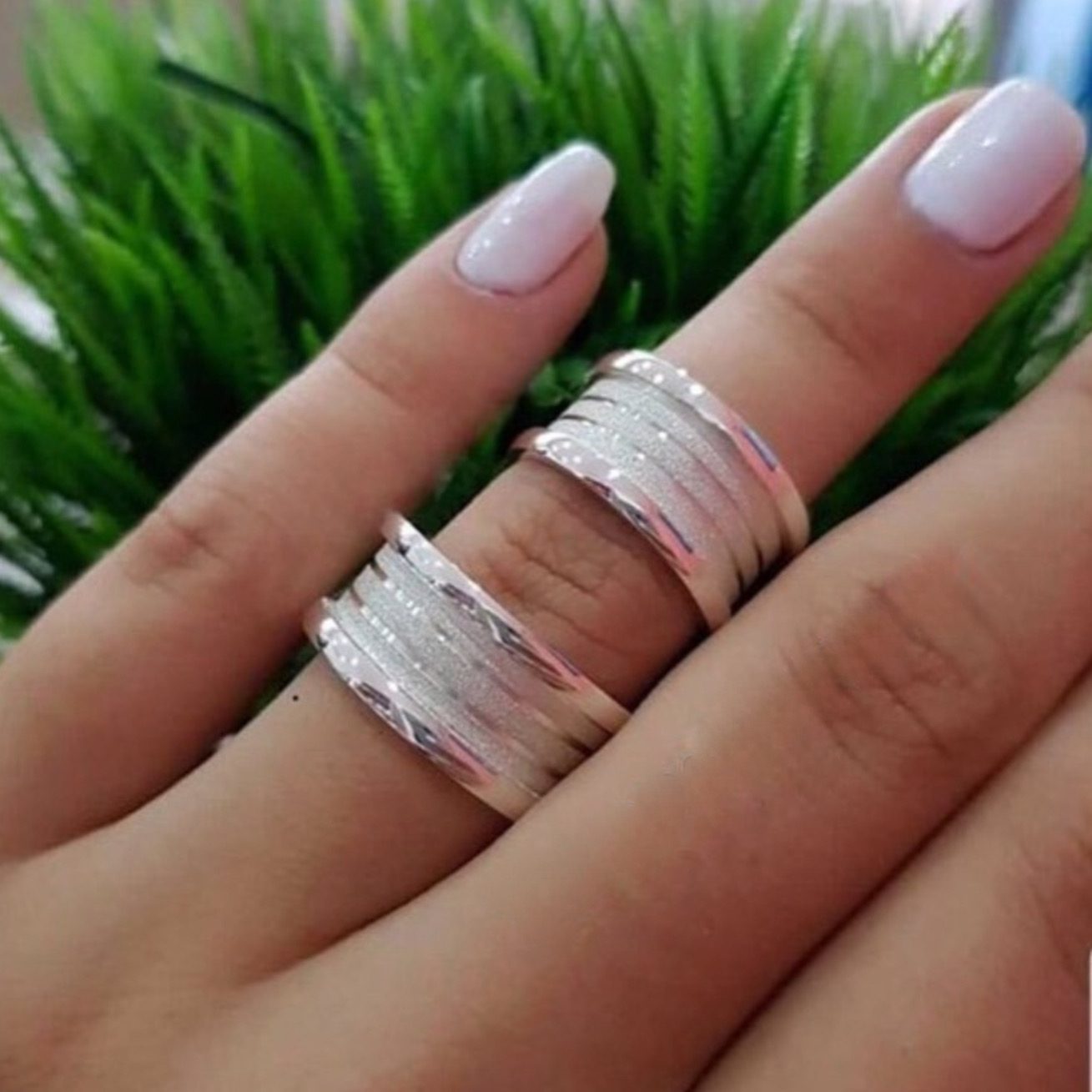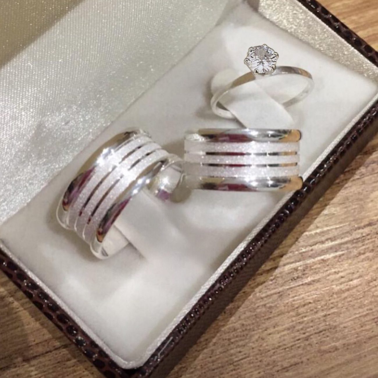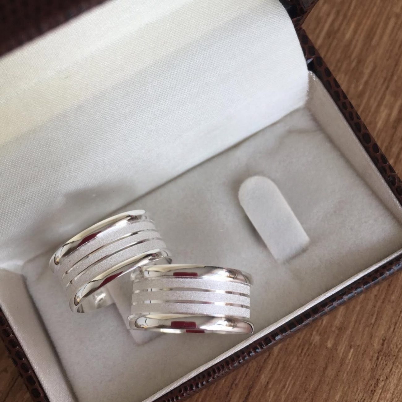 Com design robusto de 10mm, as peças apresentam 3 frisos diamantados que realçam o brilho da prata, além de um acabamento anatômico que garante conforto no uso diário. O estilo Bulgari é uma tendência atemporal que transmite força e elegância ao casal.