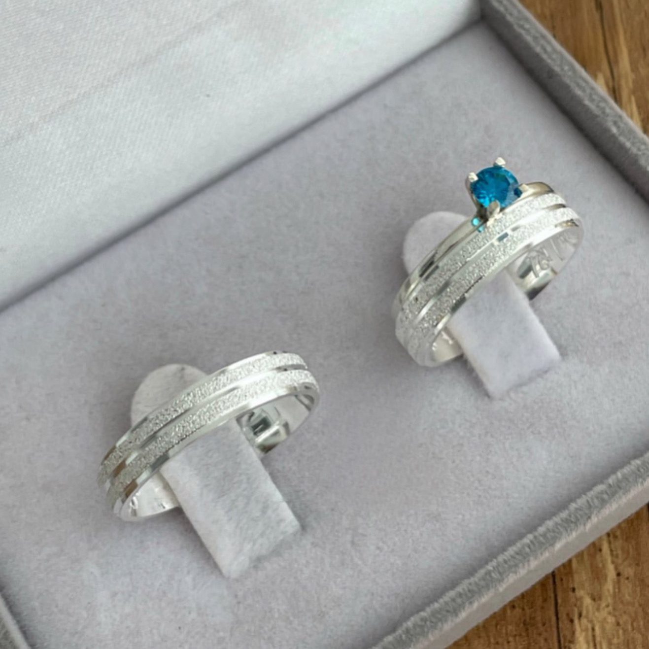 • Anel Solitário Incluso: Com pedra de zircônia azul