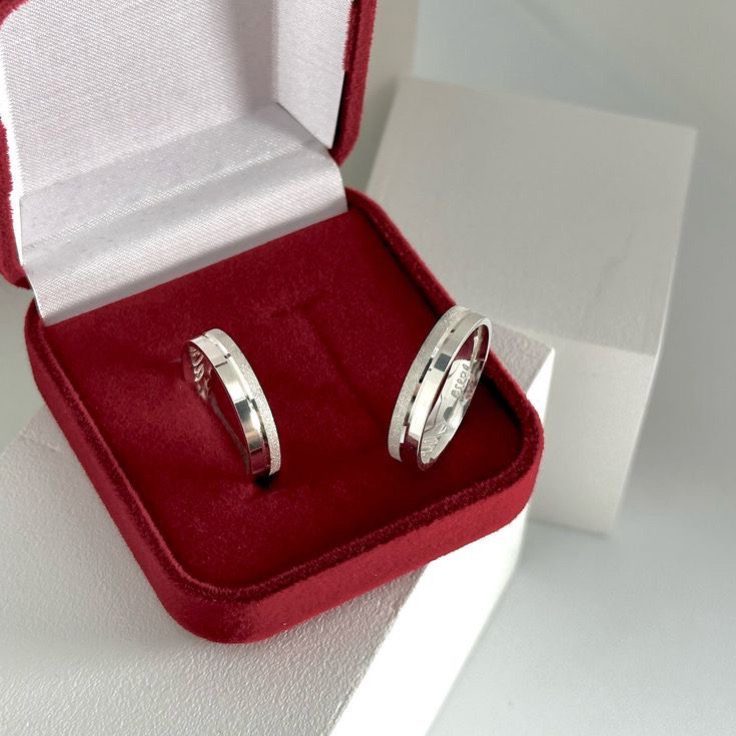 Alianças de Namoro Finas 4mm em Prata 950 | 1 Friso Lateral Diamantado | Semi Anatômico