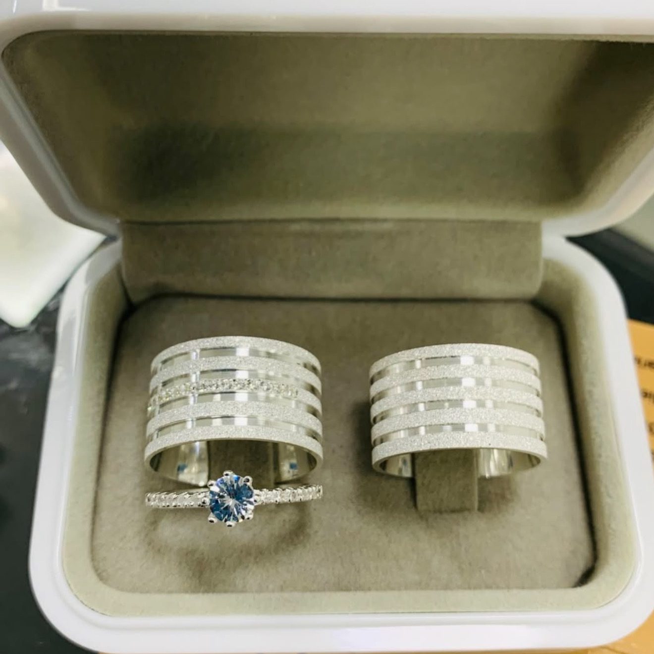 Alianças de Namoro Grossas em Prata 950 | Modelo Viviane | 10mm | 5 Frisos Diamantados | Semi Anatômicas