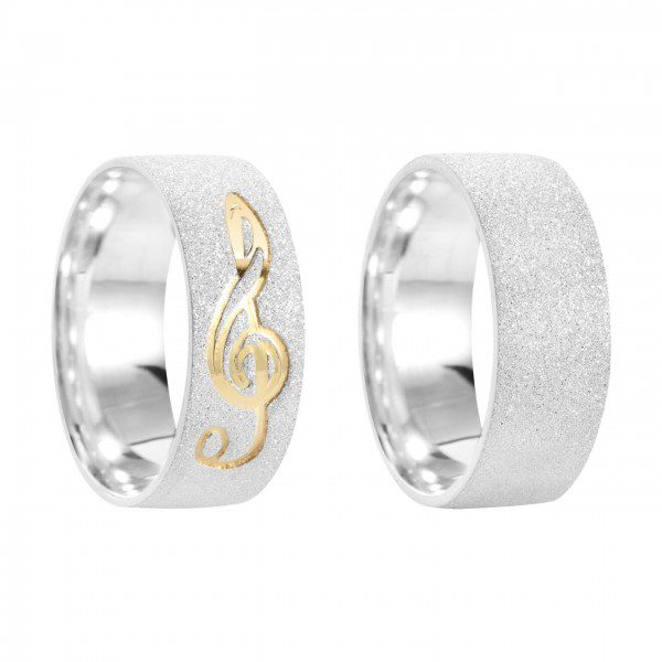 Alianças de namoro prata 950 Personalizado Todo Diamantado – Nota musical 8mm MOD 004- Friso lateral banhado a ouro 18k