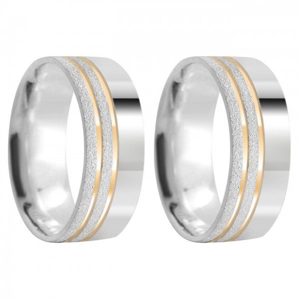 Alianças de namoro prata 950 Personalizado Friso Lateral Diamantado – Frisos banhado a ouro 18k – 8mm MOD 006- Friso lateral banhado a ouro 18k