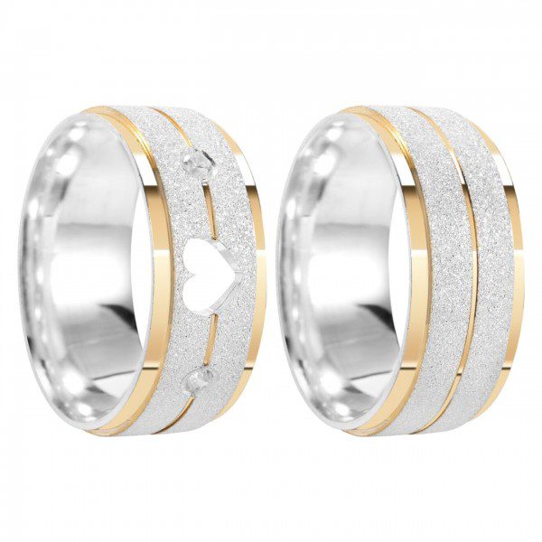 Alianças de namoro prata 950 Personalizado 8mm MOD 007- Friso Central banhado a ouro 18k –