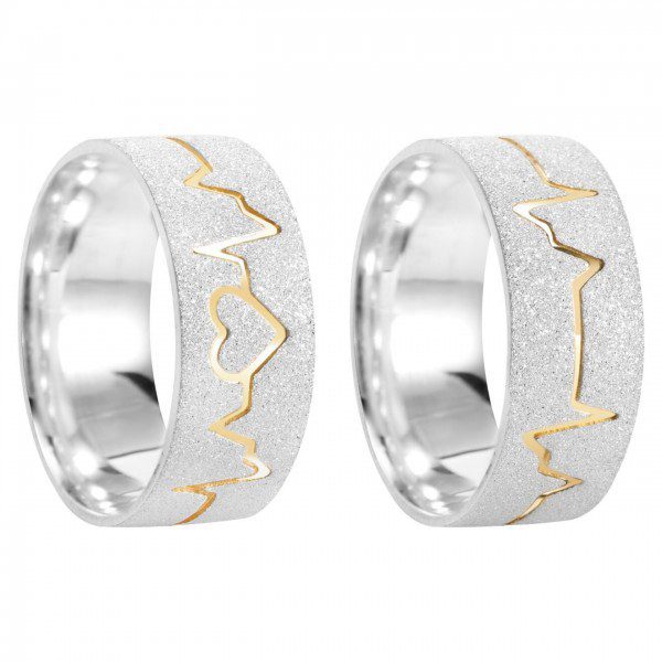● Par de Alianças em Prata 950 com filete dourado ondulado banhado a ouro 18k