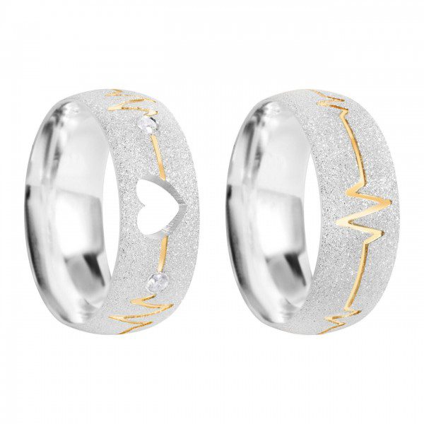 ● Par de Alianças em Prata 950 com filete dourado ondulado banhado a ouro 18k