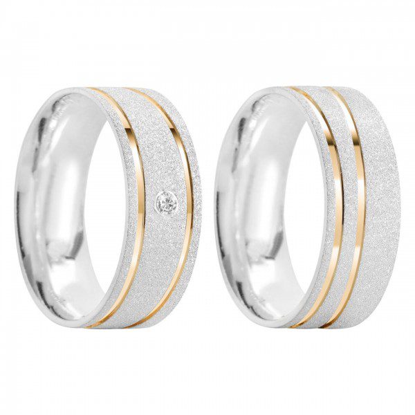 ● Par de Alianças em Prata 950 com filete dourado ondulado banhado a ouro 18k
