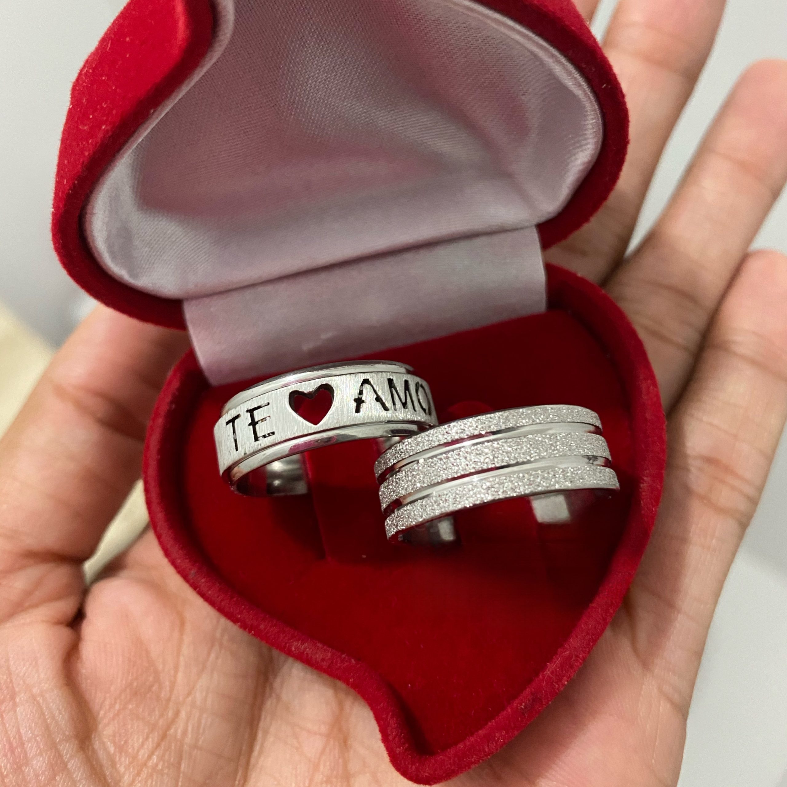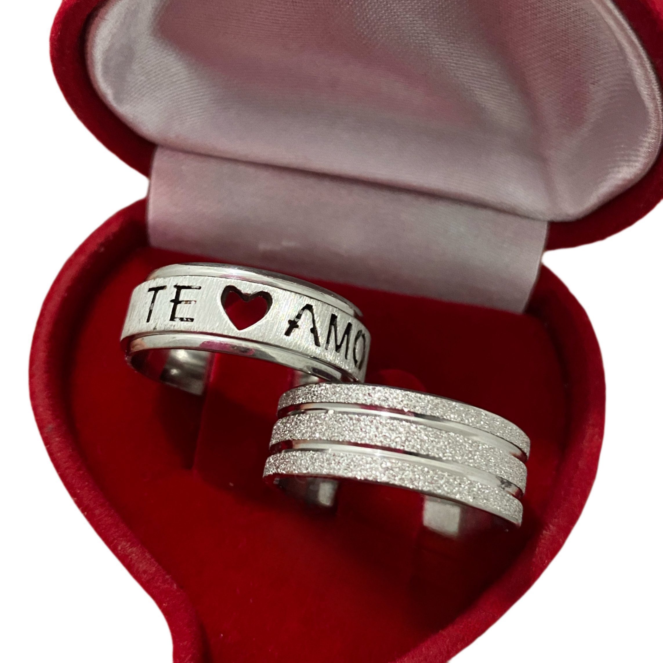 Alianças de namoro prata em aço cirúrgico Te amo – Diamantado 8mm Mod 7679 – Ideal para namoro, noivado e compromisso.