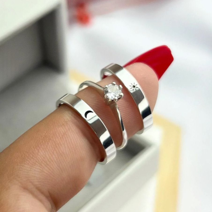As Alianças de Namoro Modelo Sol e Lua, em Prata 950, simbolizam a união perfeita entre opostos que se completam. O Sol, representando a energia, a força e a luz, encontra na Lua, símbolo de delicadeza, mistério e harmonia, seu complemento ideal. Juntas, essas duas forças representam um amor equilibrado e eterno.