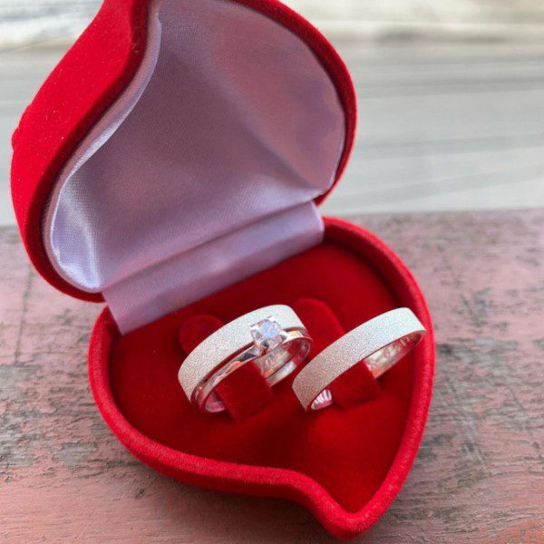 Alianças de Namoro em Prata 950 4mm | Modelo Fino Todo Diamantado | Reto Semi Anatômico