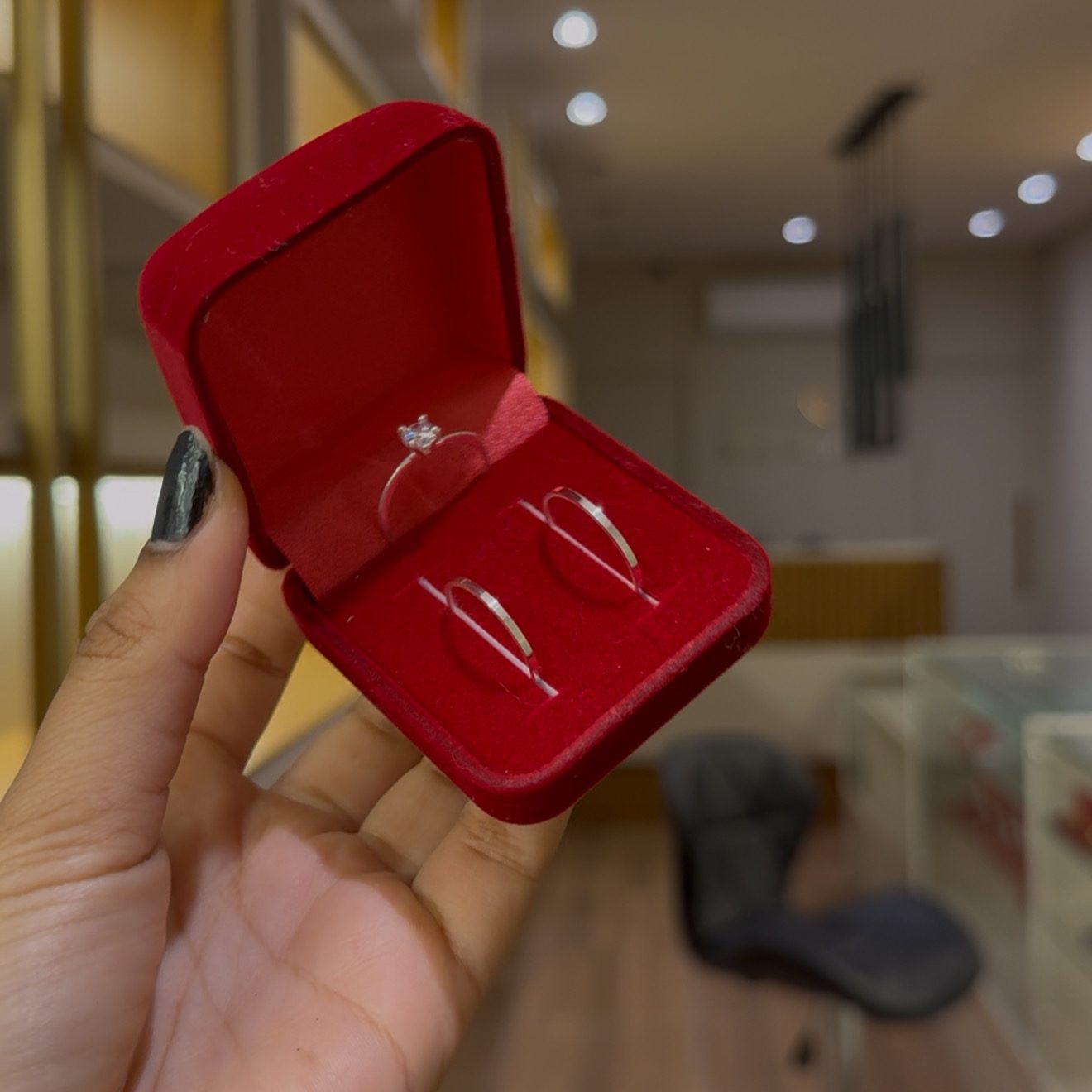 O conjunto pode ser complementado com um anel solitário opcional, cravejado com pedra de zircônia, trazendo brilho e um toque especial ao presente.