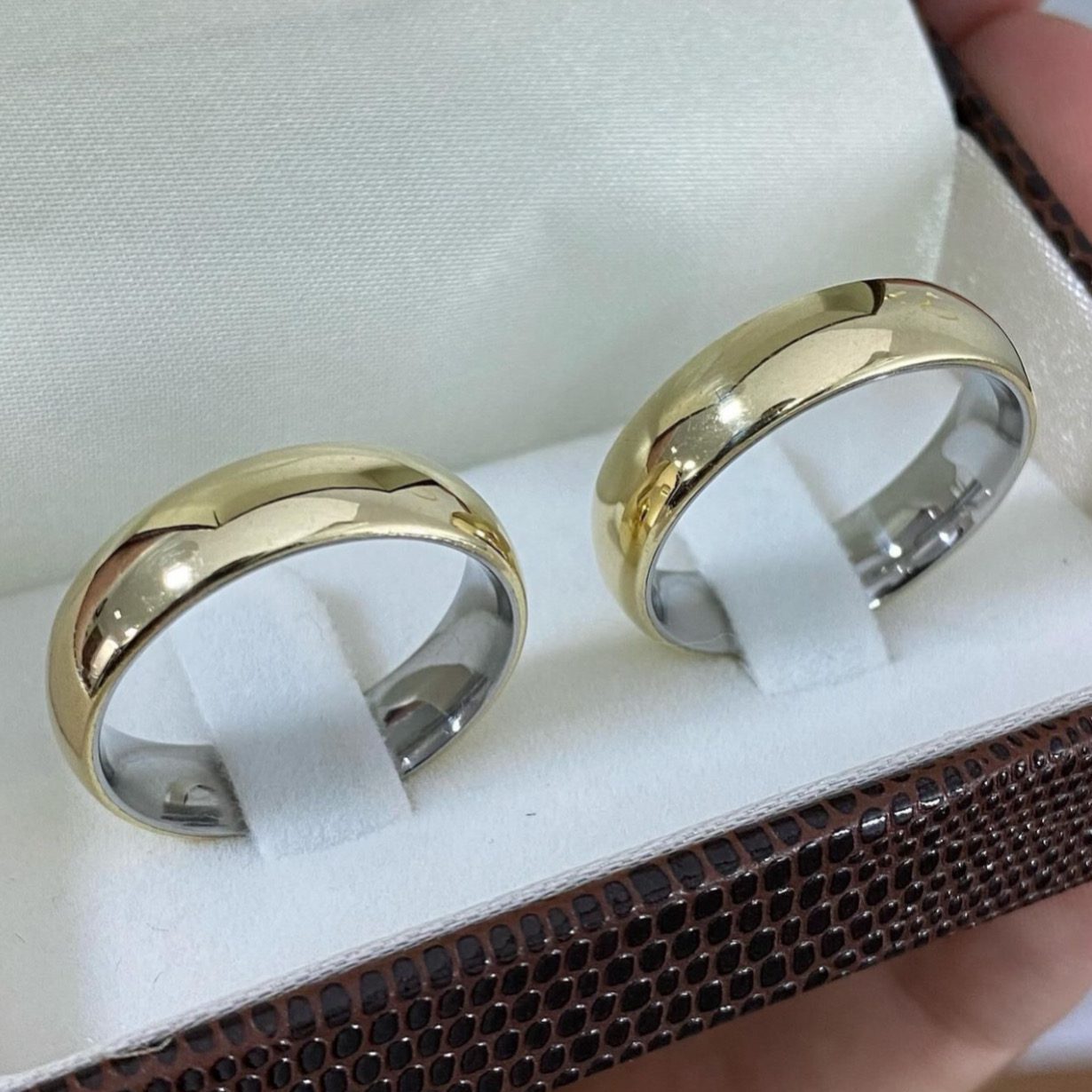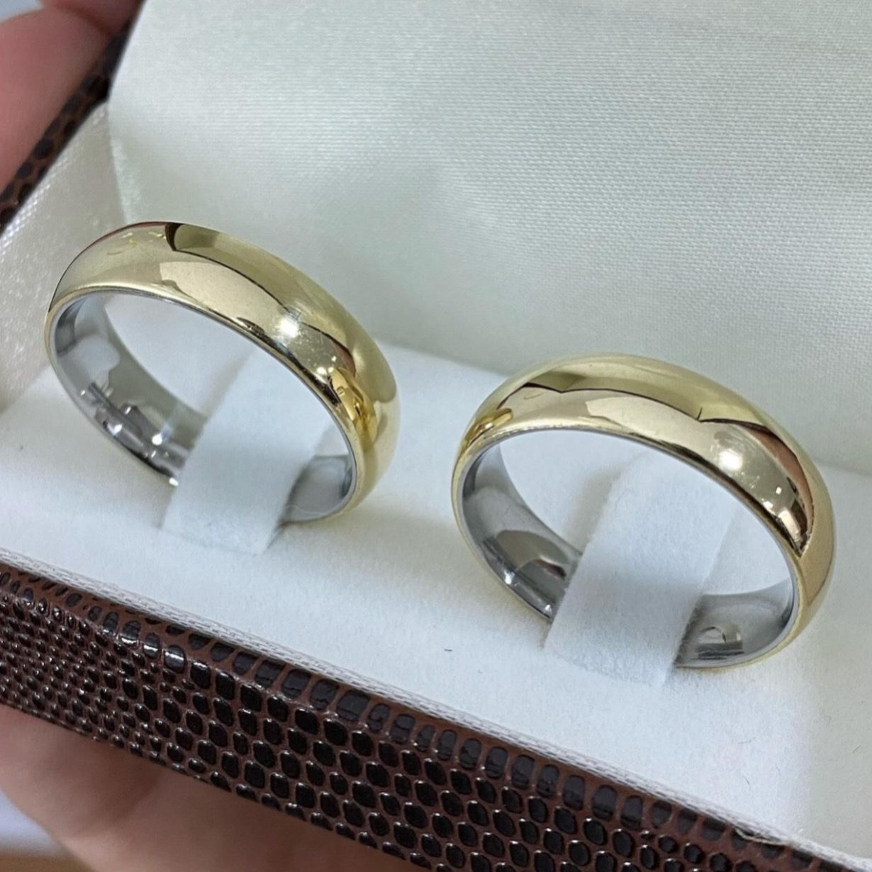 Alianças de Casamento Ouro 10K com Revestimento em Aço 5mm | Modelo Tradicional Redondo Liso Anatômico