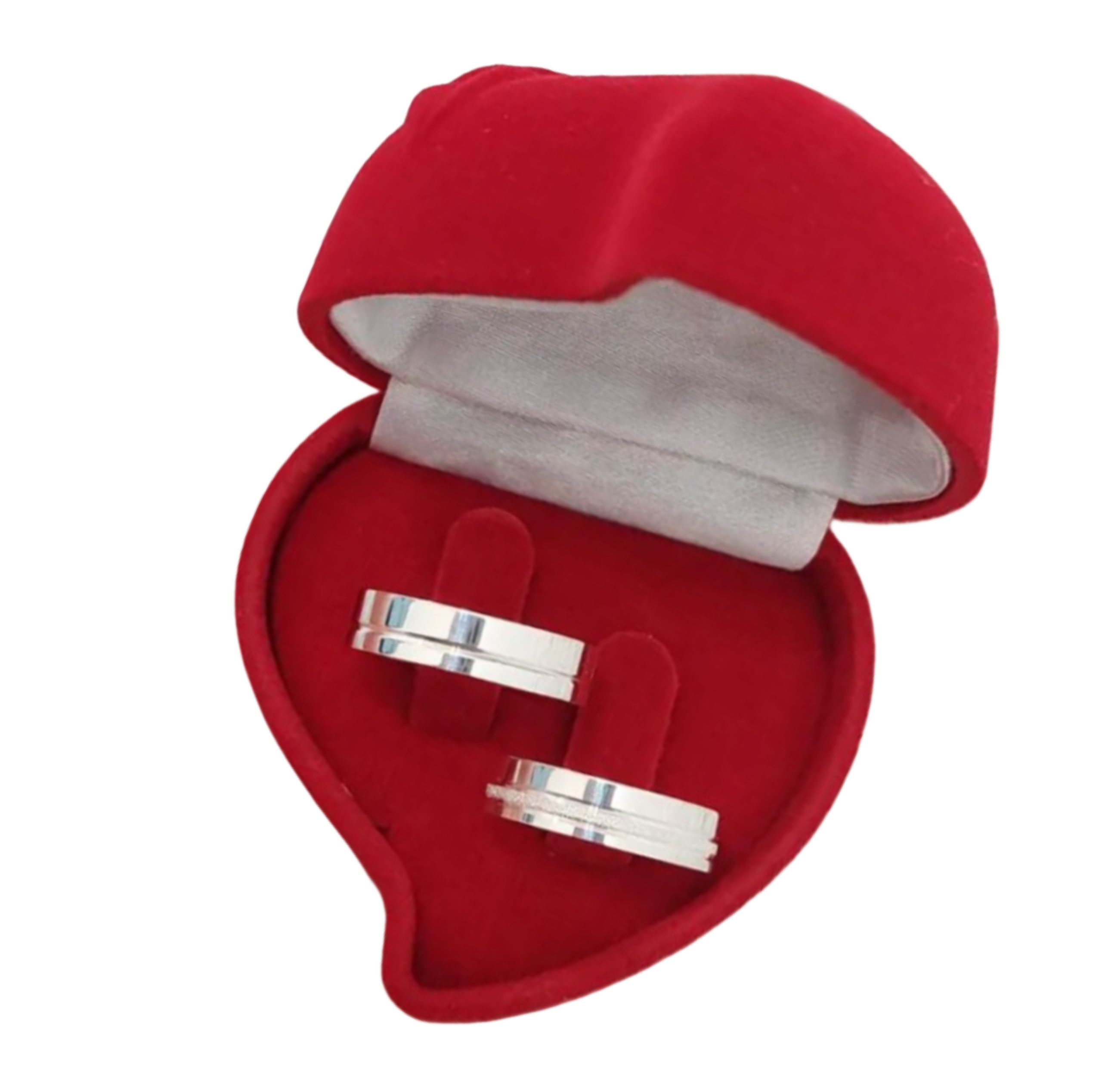 Alianças de Namoro 5mm em Prata 950 | Feminina com Detalhe Diamantado no Friso | Masculina Lisa