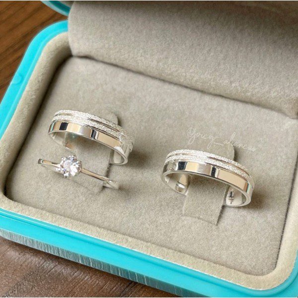 As Alianças de Namoro em Prata 950, com 6mm de largura, possuem um design sofisticado e moderno. O acabamento com dois frisos laterais diamantados confere um brilho elegante e delicado à peça, tornando-a ideal para casais que buscam exclusividade e requinte.