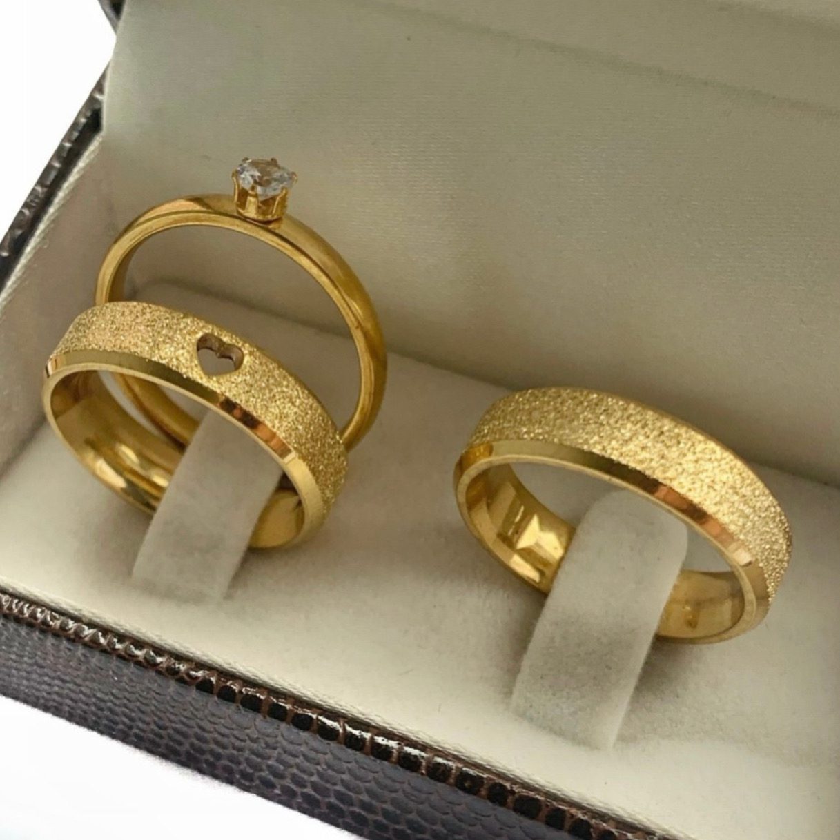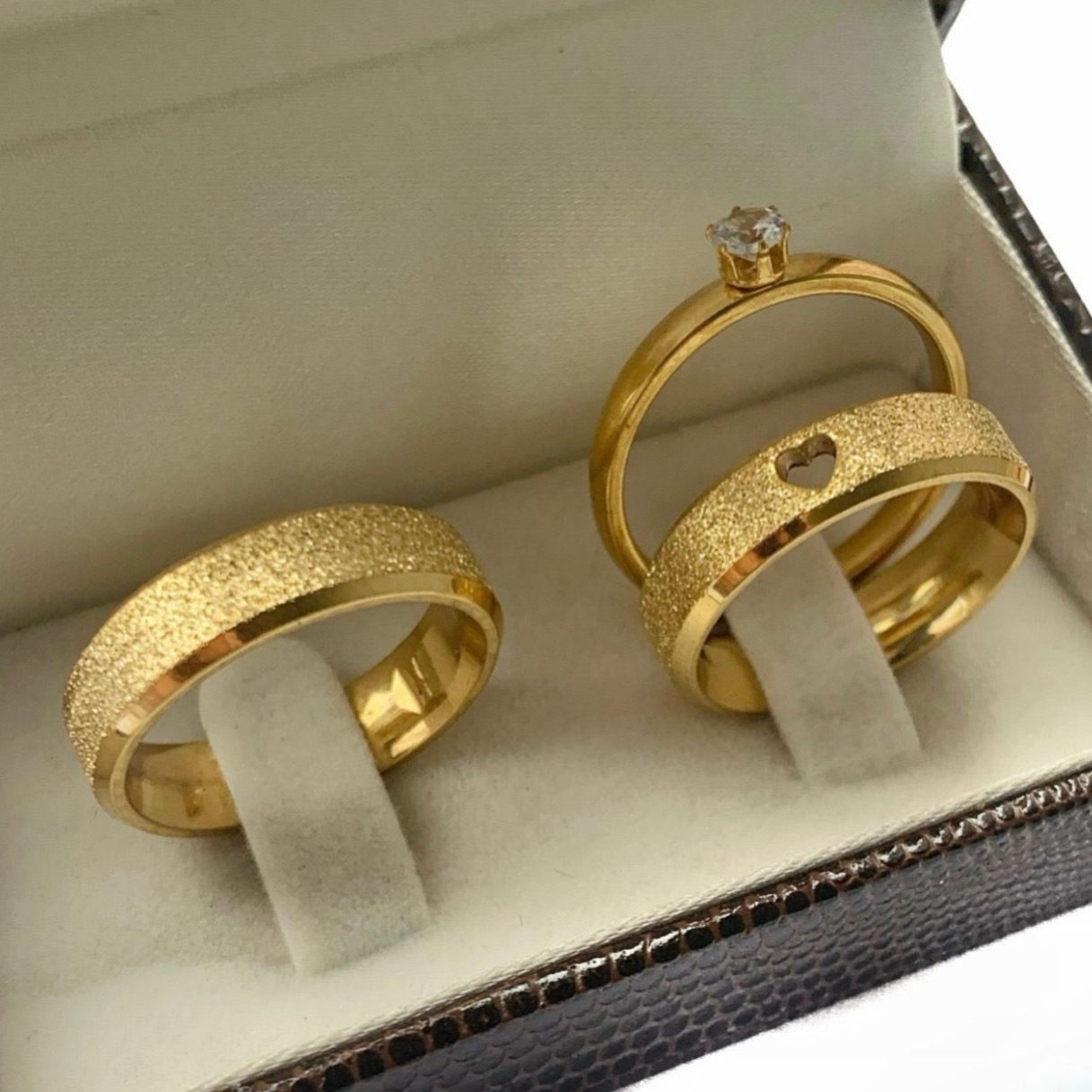 Alianças Em Aço Cirúrgico Banhado A Ouro 18k- 6mm – Diamantado