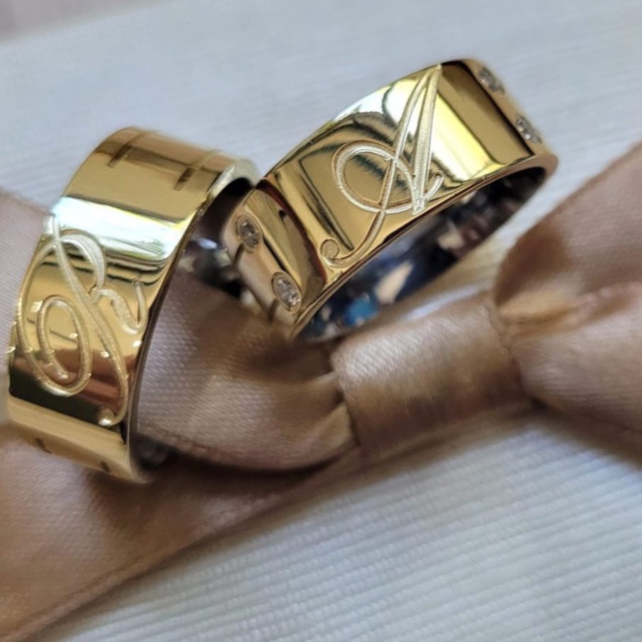 • Oferecemos a opção de gravação no par de alianças. No entanto, pedimos que verifique atentamente os tamanhos antes de solicitar a gravação, pois, em caso de troca devido ao tamanho, a gravação impede a devolução ou troca do produto.