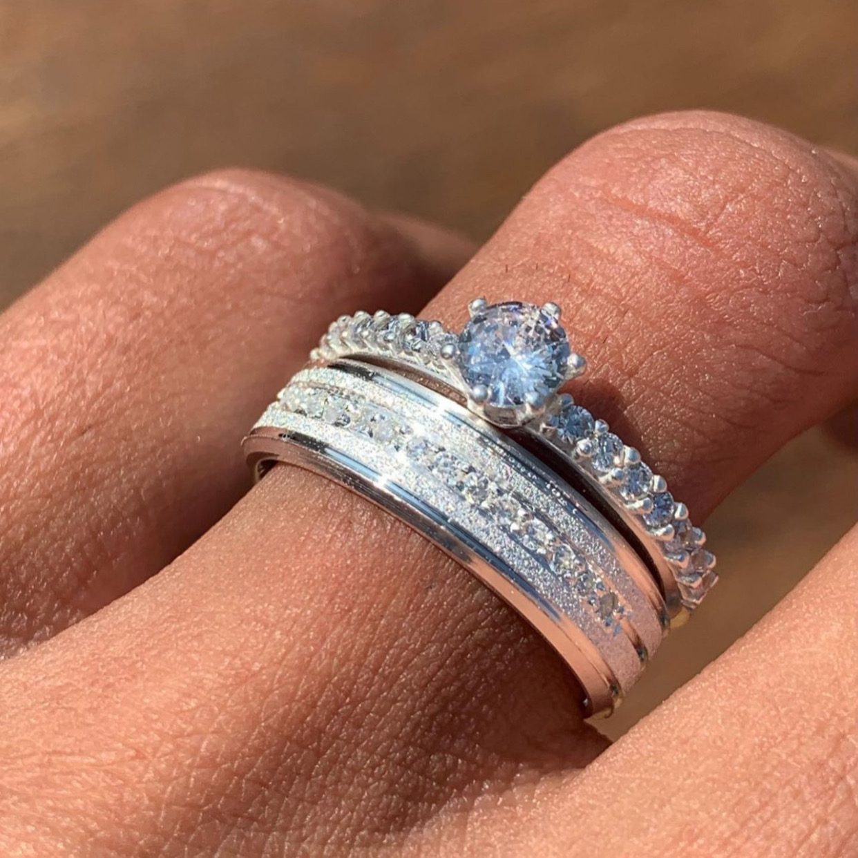 As Alianças de Namoro Monique em Prata 950 com 6mm de largura trazem um visual refinado e elegante. O modelo diamantado e o acabamento chanfrado conferem uma textura única, com frisos laterais que adicionam sofisticação ao design. A versão feminina é adornada com 15 pedras de zircônia dispostas ao longo da aliança, criando um brilho deslumbrante que se estende por meia volta. Ambas as alianças têm o formato semi anatômico, proporcionando conforto durante o uso.