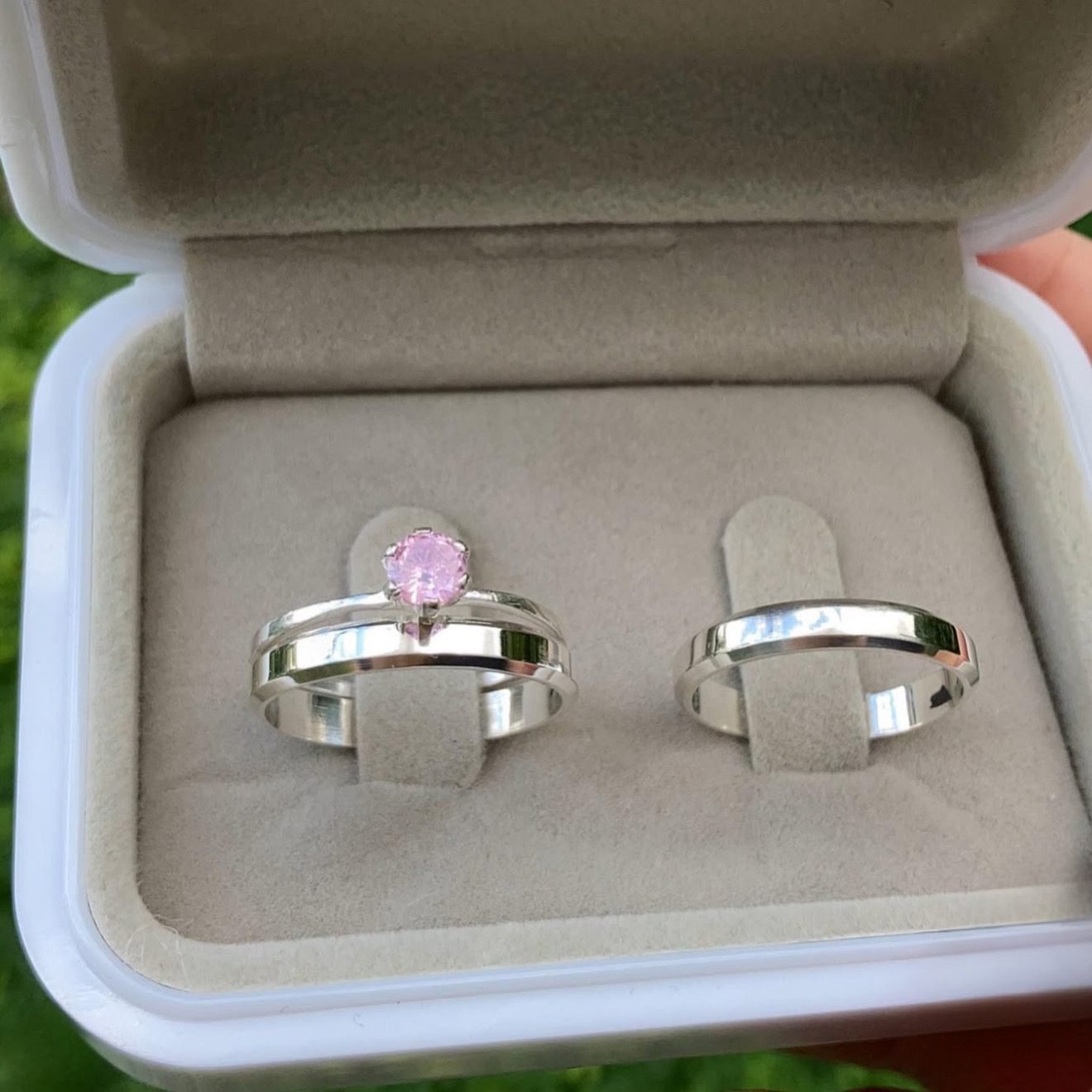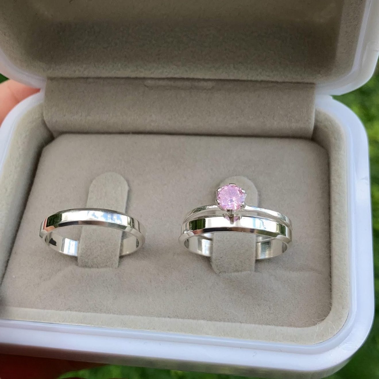 As Alianças Finas de Namoro em Prata 950, modelo Chanfrado, são perfeitas para casais que buscam um design delicado e sofisticado. Com 3mm de largura, acabamento liso polido e bordas chanfradas, essas alianças oferecem um visual moderno e elegante. O modelo anatômico proporciona máximo conforto para o uso diário. Para complementar o conjunto, acompanha um anel solitário cravejado com pedra de zircônia na cor rosa, tornando o kit ainda mais especial.