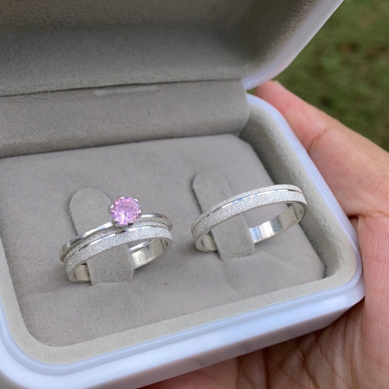 As Alianças Finas de Namoro em Prata 950, modelo Italy, são perfeitas para casais que buscam elegância e sofisticação. Com 3mm de largura, o design todo diamantado e o friso lateral delicado garantem um brilho intenso e moderno. O modelo semi anatômico proporciona conforto no uso diário, tornando-o ideal para simbolizar momentos únicos. O conjunto acompanha um anel solitário cravejado com pedra de zircônia na cor rosa claro, acrescentando um toque especial de charme e exclusividade.