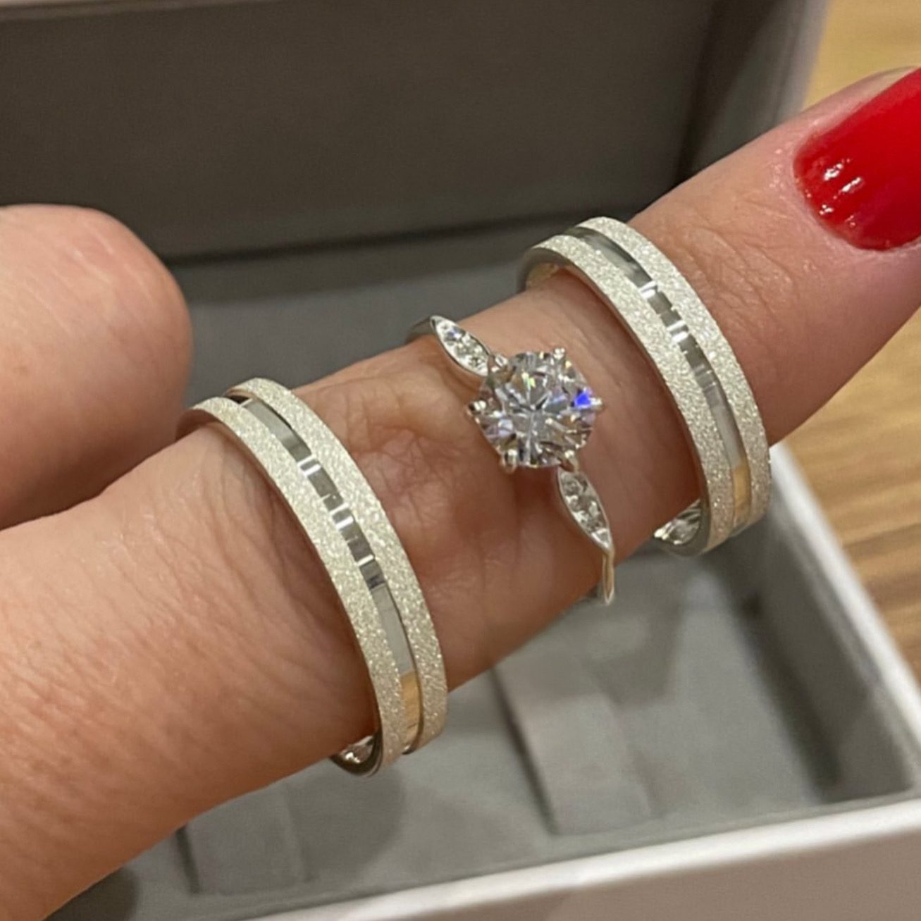 Celebre o amor com as Alianças Finas de Namoro em Prata 950, com 4mm de largura e design diamantado com 1 friso central largo. Modelo semi anatômico, garantindo conforto e ajuste perfeito para o uso diário. O conjunto acompanha anel solitário incluso com pedra de zircônia de acabamento premium, proporcionando ainda mais brilho, elegância e durabilidade para simbolizar o seu compromisso.