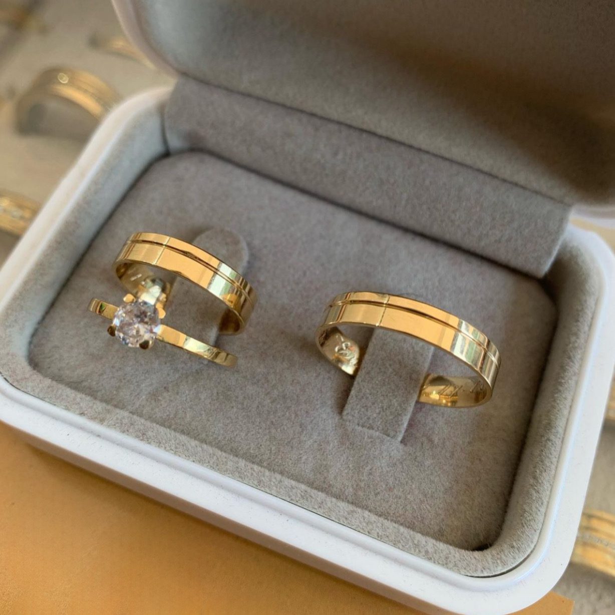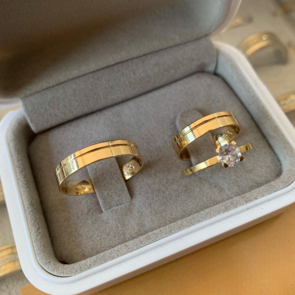• Um par de alianças em ouro 18K
