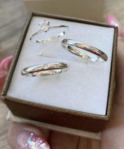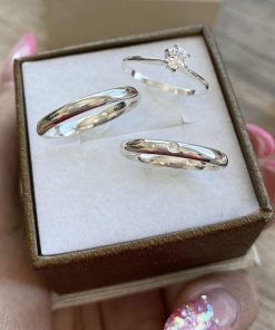 Alianças de Namoro Finas 3mm em Prata 950 | Tradicional Redondo | Feminina com 1 Pedra