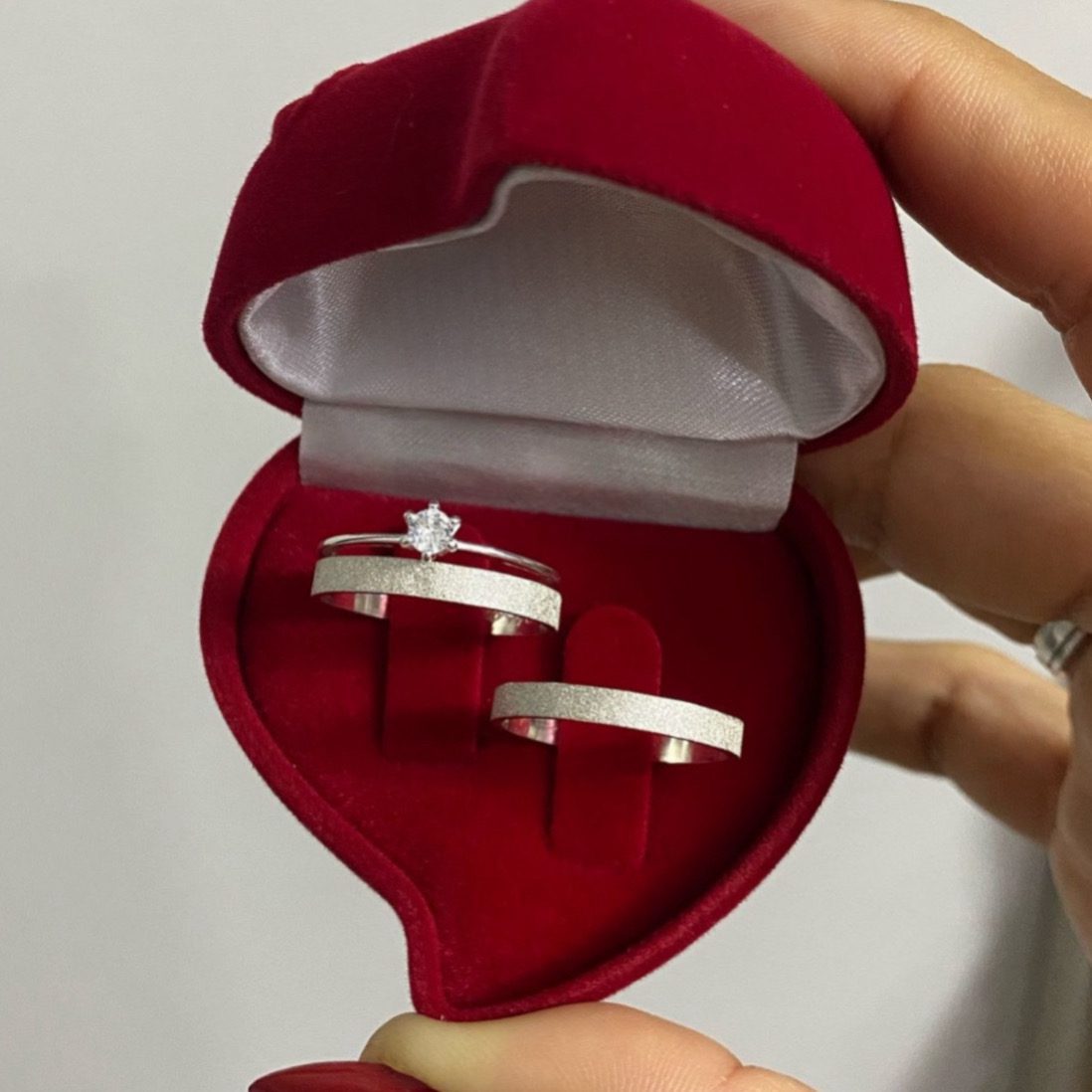 Alianças de Namoro 3mm em Prata 950 | Diamantado Reto Semi Anatômico | Feminina com 1 Pedra