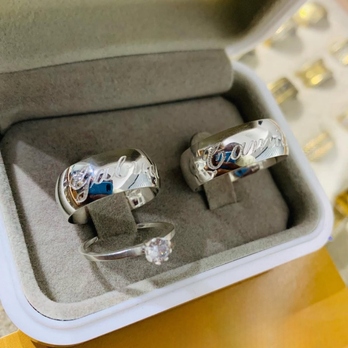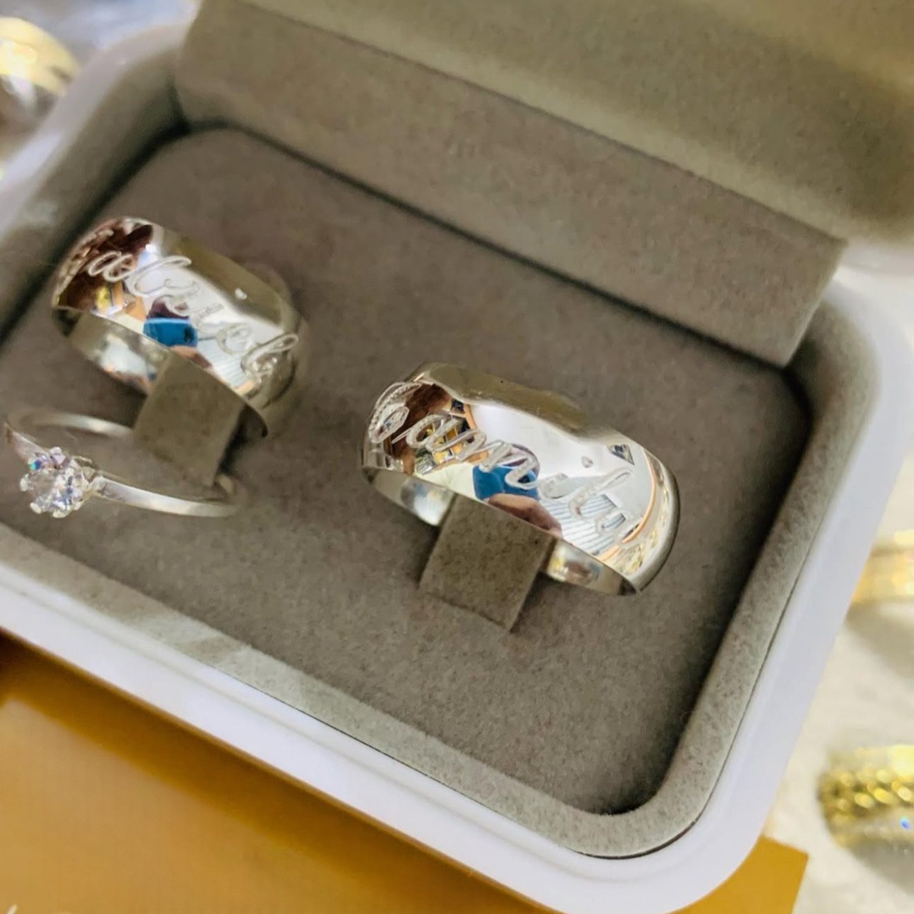 • Não realizamos trocas em peças com gravações personalizadas. Certifique-se de medir corretamente o tamanho em uma joalheria de confiança antes da compra.