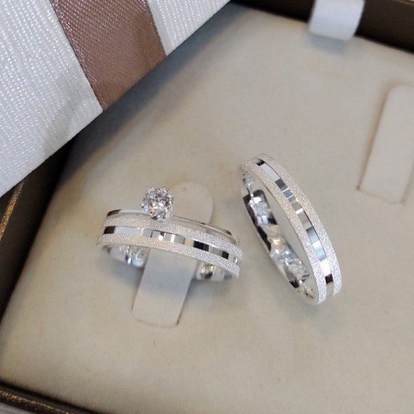 Alianças de Namoro 3mm em Prata 950 | Modelo Sabrina | Semi Anatômica com Friso Central Largo e Anel Solitário Opcional