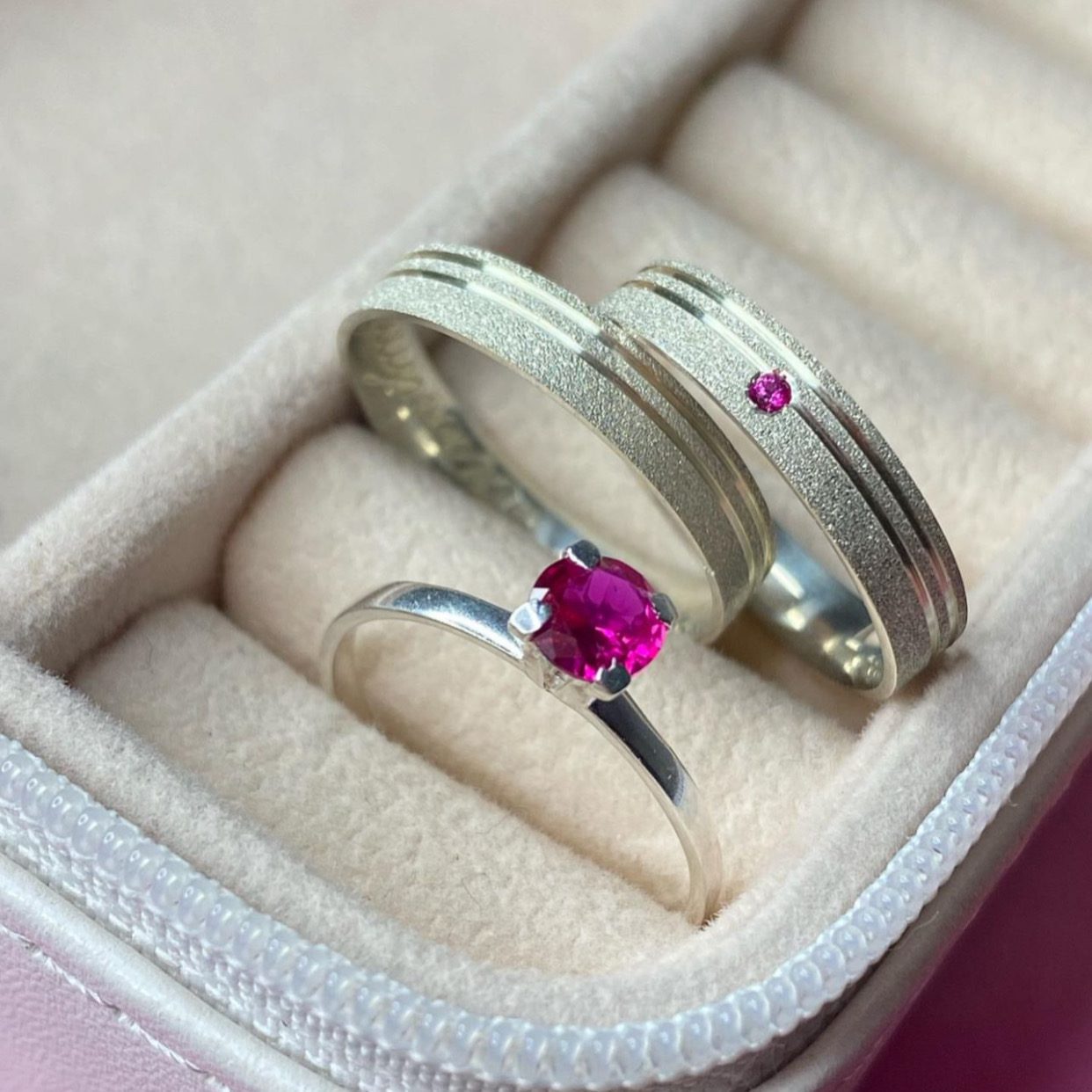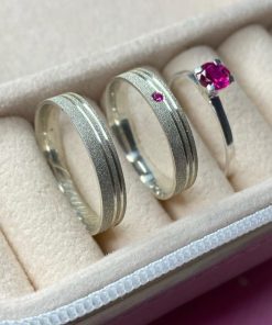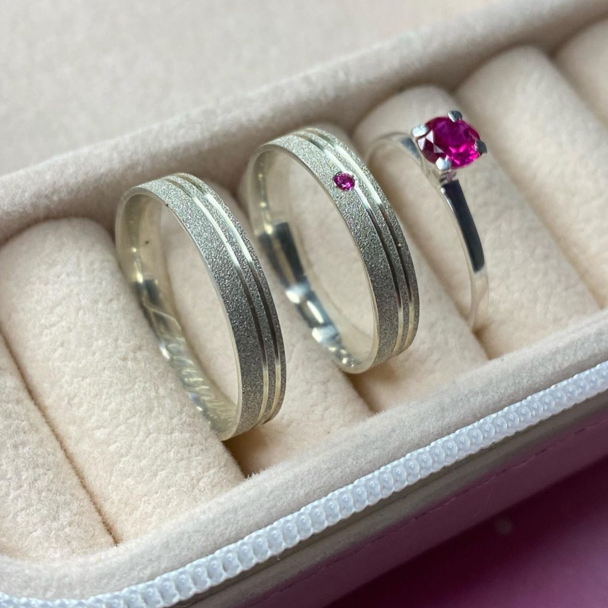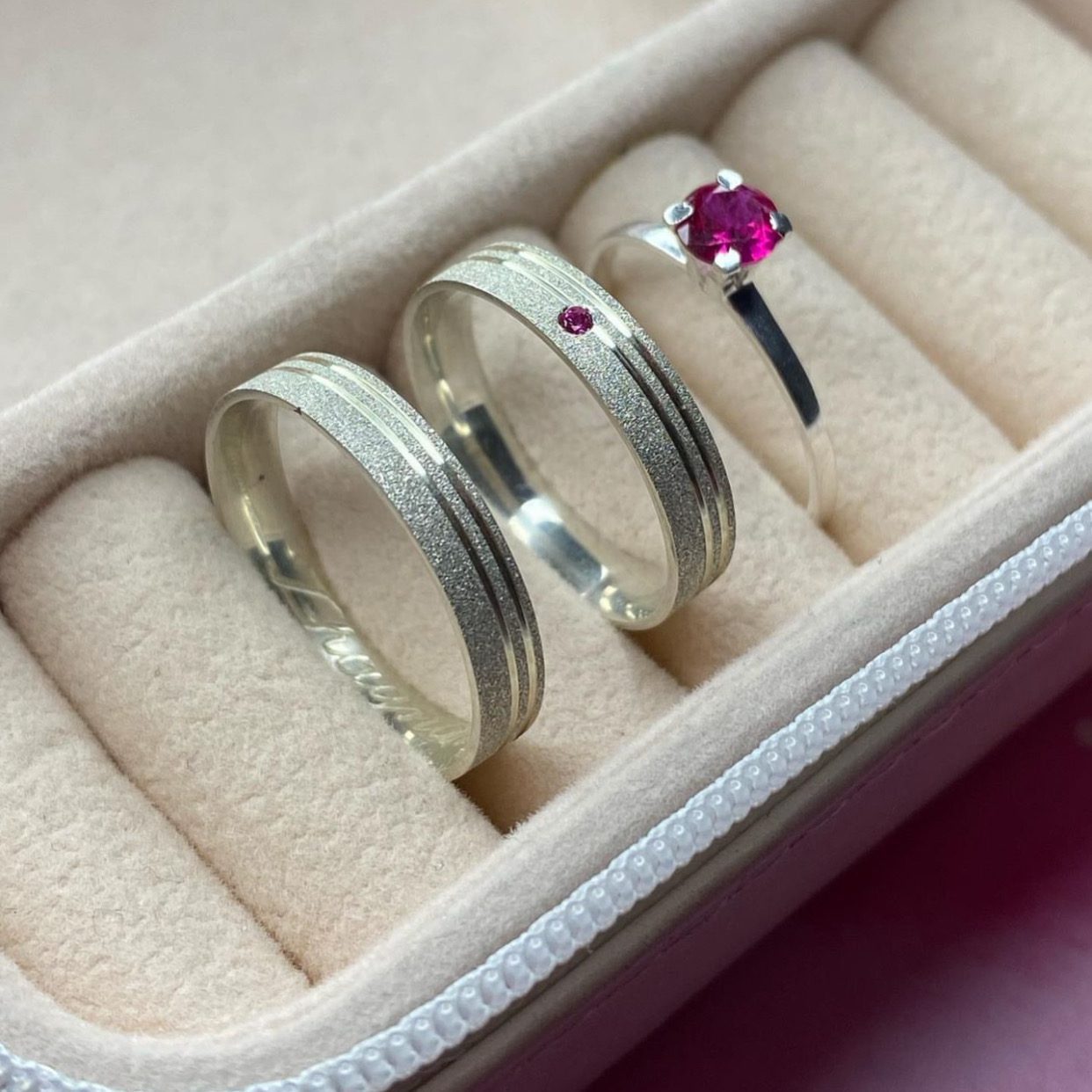 Alianças de Namoro 4mm em Prata 950 | Modelo Diamantado com 2 Frisos Laterais