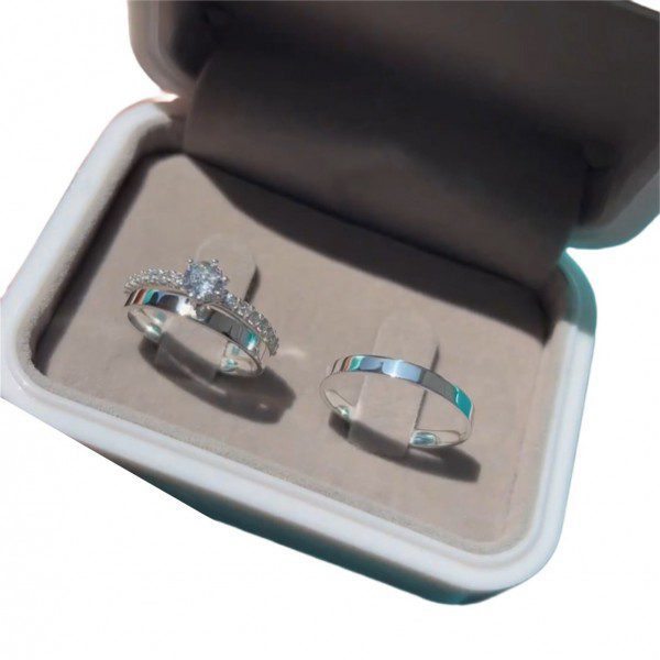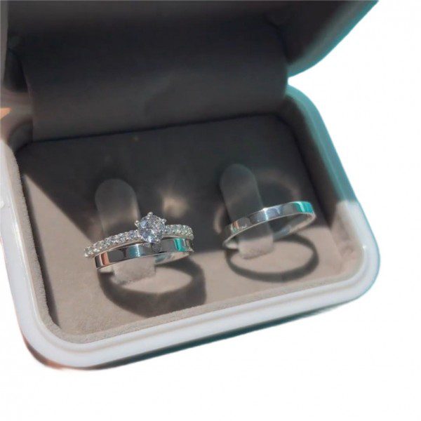 As Alianças de Namoro em Prata 950, com 2mm de largura, são delicadas e sofisticadas. O modelo traz um toque especial de brilho liso e elegante. Para complementar o conjunto, há a opção de adicionar um anel solitário cravejado de pedras de zircônia.