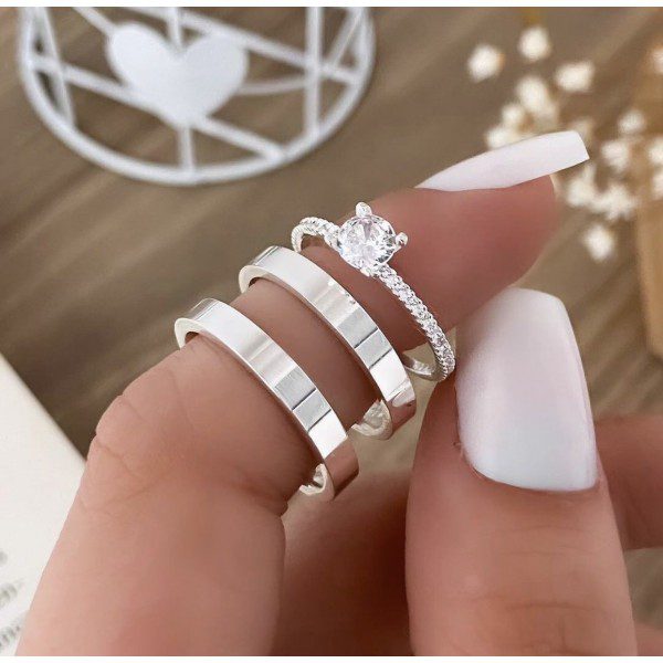 Para complementar o conjunto, há a opção de incluir um anel solitário cravejado com pedra de zircônia, adicionando um toque especial de brilho e sofisticação ao modelo.