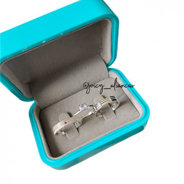 O modelo feminino se destaca pelo acabamento todo diamantado, realçado por 2 frisos laterais e uma pedra de zircônia rosa no centro do friso, proporcionando brilho e requinte à peça. Já o modelo masculino mantém um acabamento liso com 2 frisos laterais, garantindo um visual discreto e elegante.