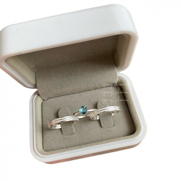 O formato semi anatômico proporciona um encaixe confortável no dedo, tornando o uso diário mais agradável. Para complementar o conjunto, há a opção de incluir um anel solitário opcional cravejado com pedra de zircônia azul, agregando ainda mais sofisticação ao modelo.