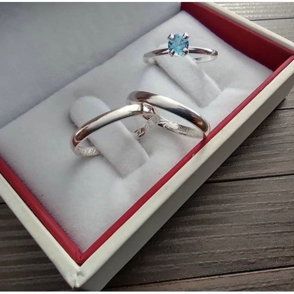 Alianças de Namoro em Prata 950 3mm | Modelo Charlotte | Tradicional Lisa | Semi Anatômica | Anel Solitário Opcional com Pedra de Zircônia Azul