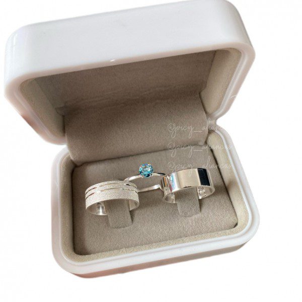 Para complementar o conjunto, um anel solitário com pedra de zircônia azul acompanha o modelo, agregando ainda mais exclusividade e charme.