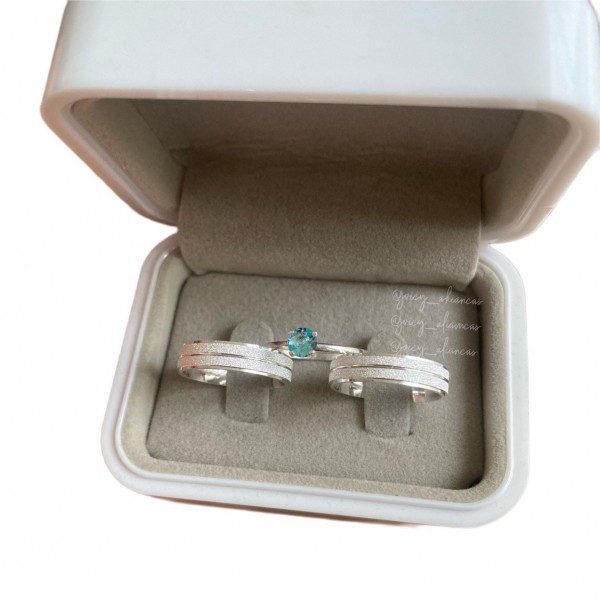 O modelo semi anatômico garante conforto para o uso diário, tornando essas alianças ideais para quem busca beleza e praticidade. Para quem deseja um toque extra de sofisticação, há a opção de adicionar um anel solitário cravejado com pedra de zircônia.