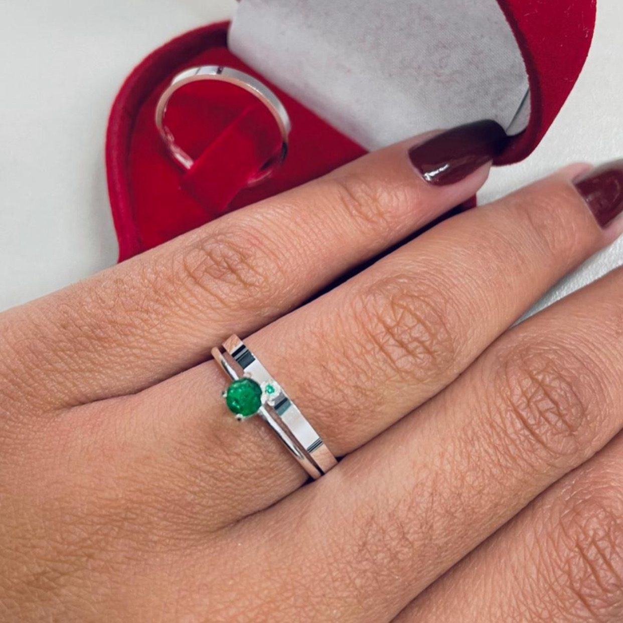 Alianças de Namoro 2mm em Prata 950 | Modelo Fino Reto Liso | Semi Anatômico | Feminina com 1 Pedra Verde – Anel Solitário Incluso