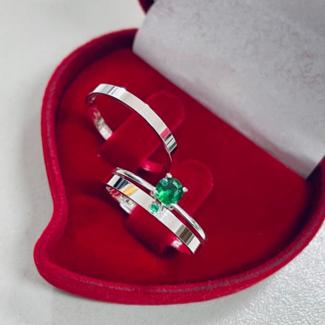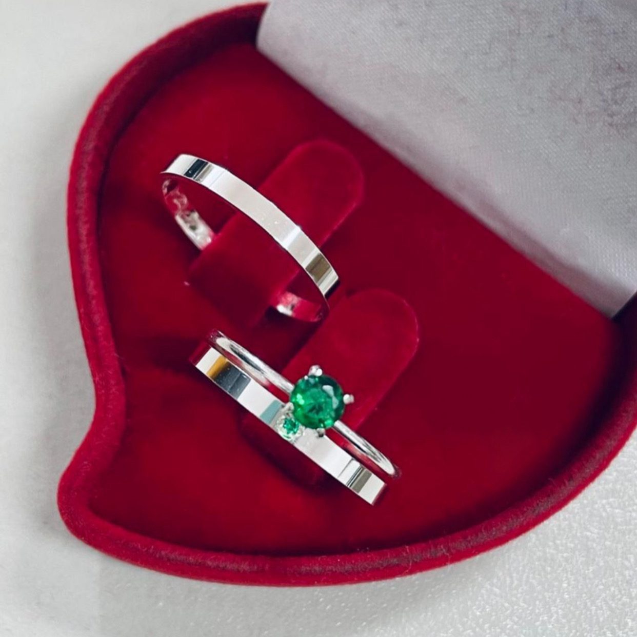 As Alianças de Namoro em Prata 950 são perfeitas para casais que preferem um design minimalista e sofisticado. Com 2mm de largura e acabamento semi anatômico, garantem conforto e elegância no uso diário. O modelo feminino conta com 1 pedra de zircônia central verde, adicionando um toque especial, enquanto o modelo masculino permanece liso, mantendo a simplicidade e a sofisticação do par. Para complementar o conjunto, um anel solitário com pedra de zircônia verde Incluso, trazendo ainda mais brilho e exclusividade.