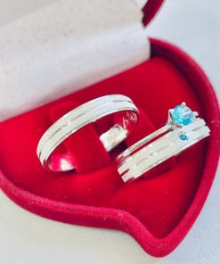 Alianças de Namoro 5mm em Prata 950 | Modelo Anatômico | 2 Frisos Diamantados | Feminina com Pedra Verde