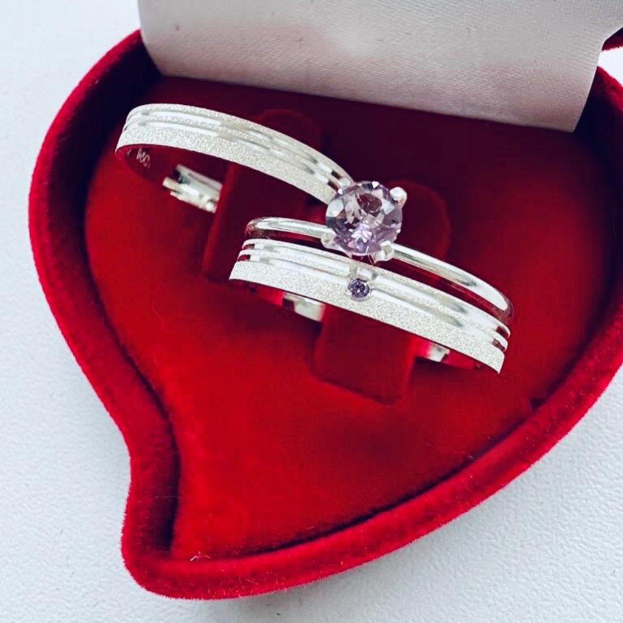 As Alianças Finas de Namoro em Prata 950 com largura de 3mm oferecem um design sofisticado, com acabamento diamantado e 2 frisos laterais, garantindo um visual refinado e elegante. O modelo feminino conta com uma pedra de zircônia lilás cravejada no friso, enquanto o masculino segue o mesmo design, porém sem a pedra. O anel solitário opcional pode ser complementado com pedra de zircônia lilás, ideal para quem deseja adicionar um toque extra de romantismo.