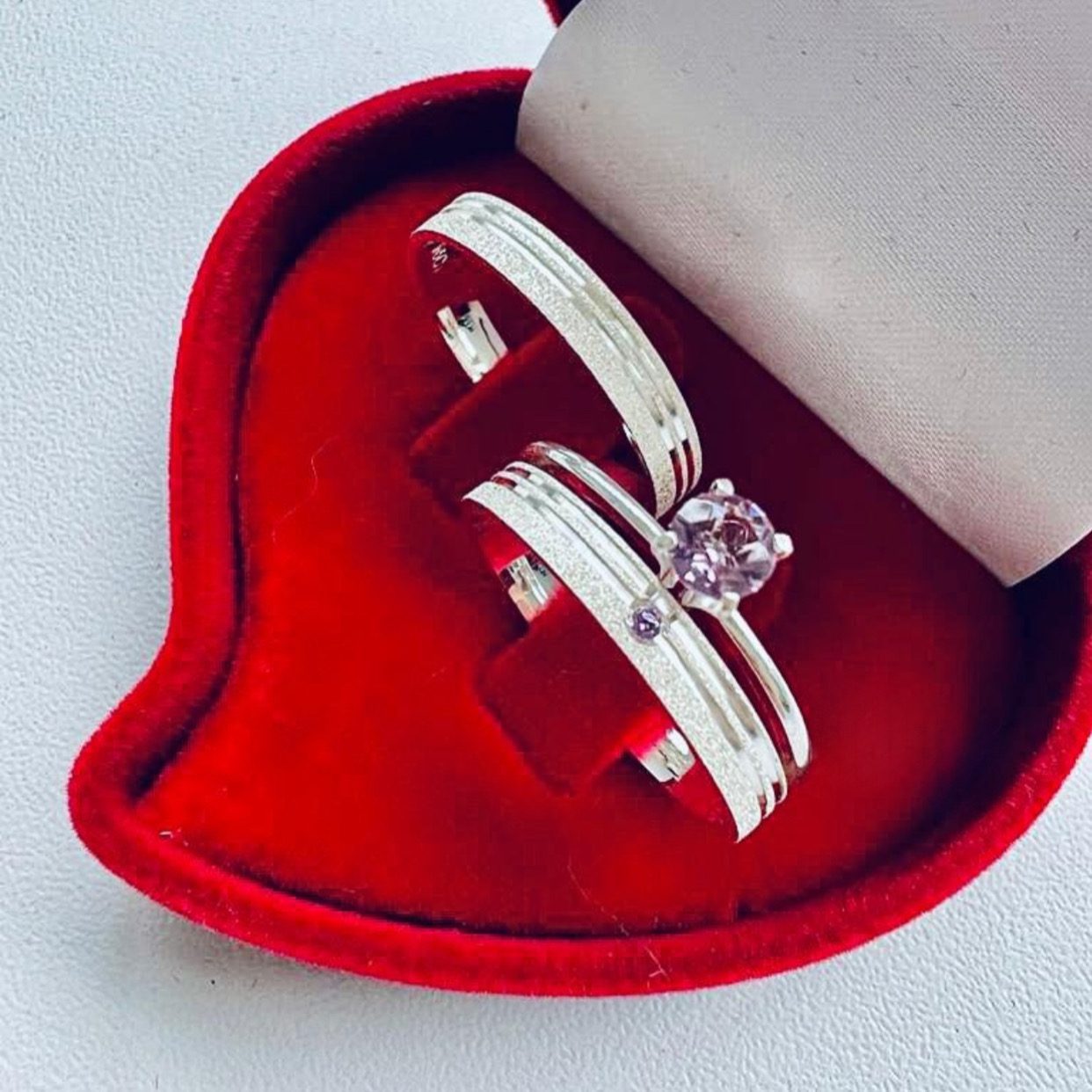• Anel Solitário Opcional: Adicione uma pedra de zircônia lilás para complementar o conjunto.