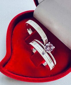 • Feminino com Pedra Lilás: Pedra de zircônia cravejada, proporcionando sofisticação.
