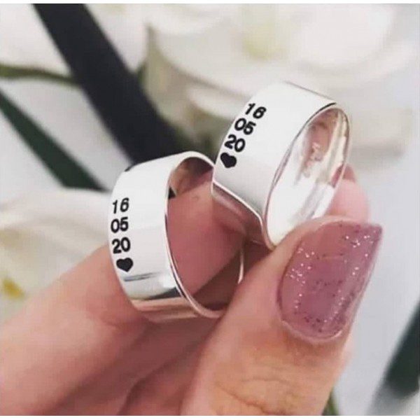 Alianças de Namoro em Prata 950 | Modelo Anthony | 7mm Reto Anatômico | Personalizado com Data Especial