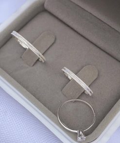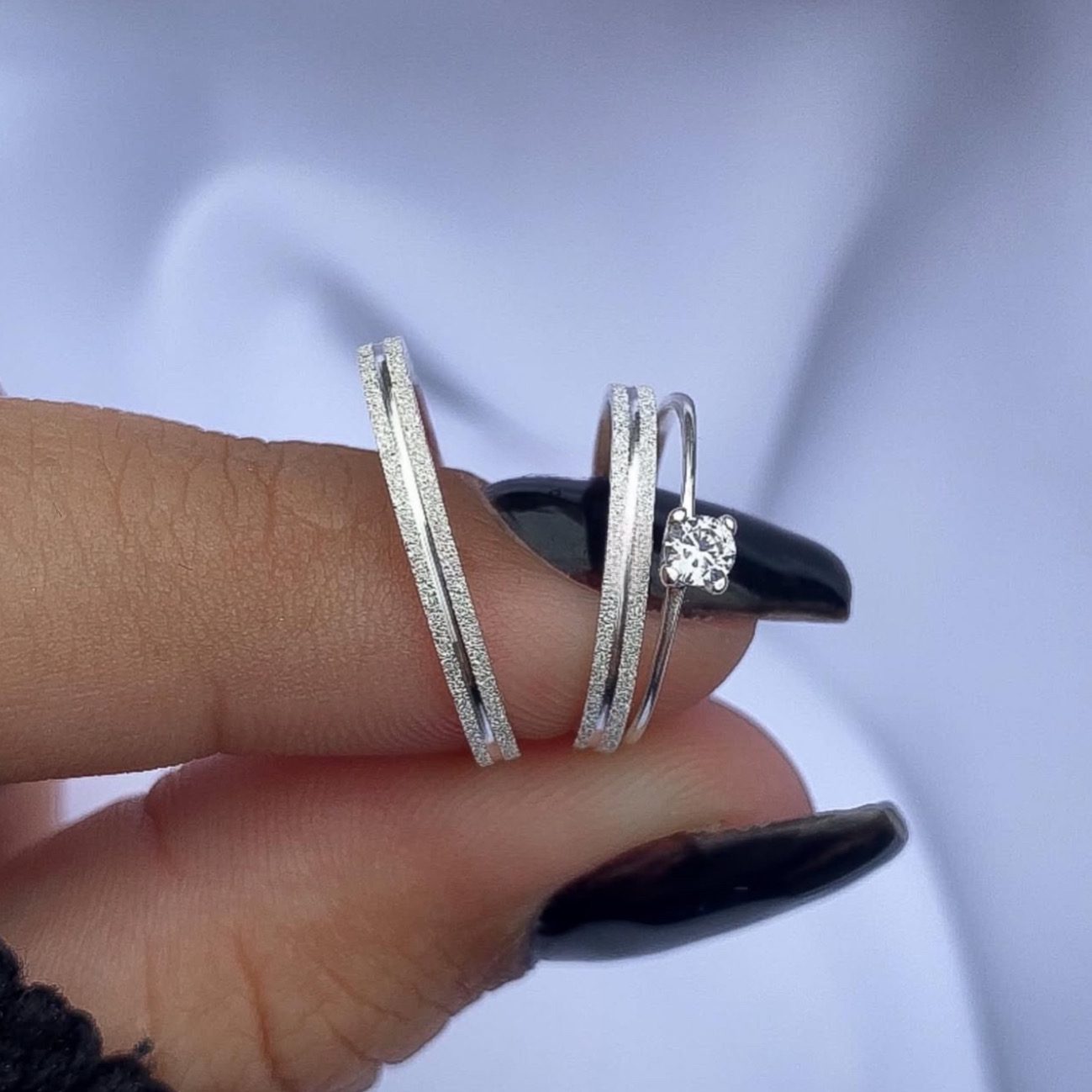 Alianças de Namoro Finas em Prata 950 2mm | Modelo Isabel | Diamantado com 1 Friso Central | Semi Anatômico | Anel Solitário Incluso