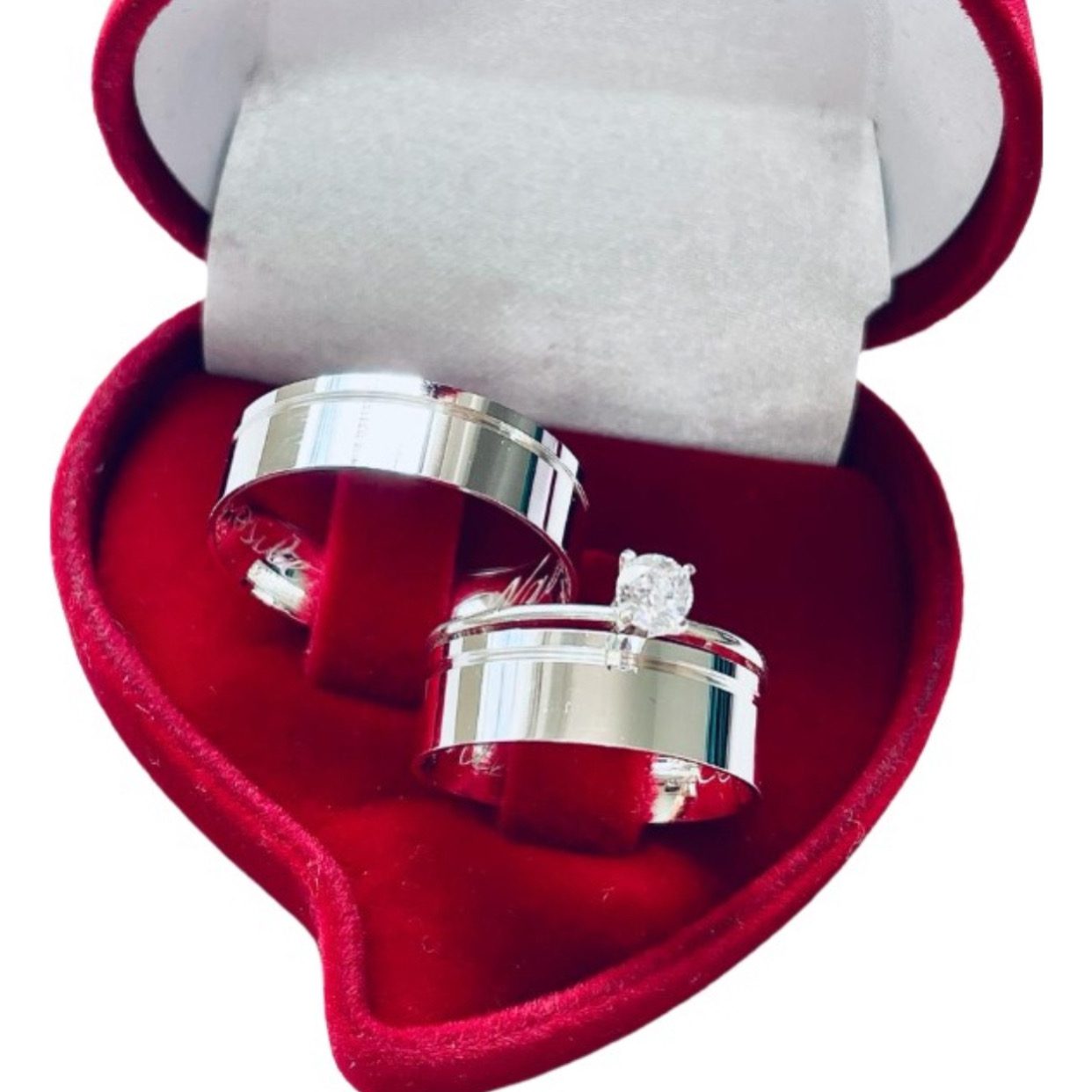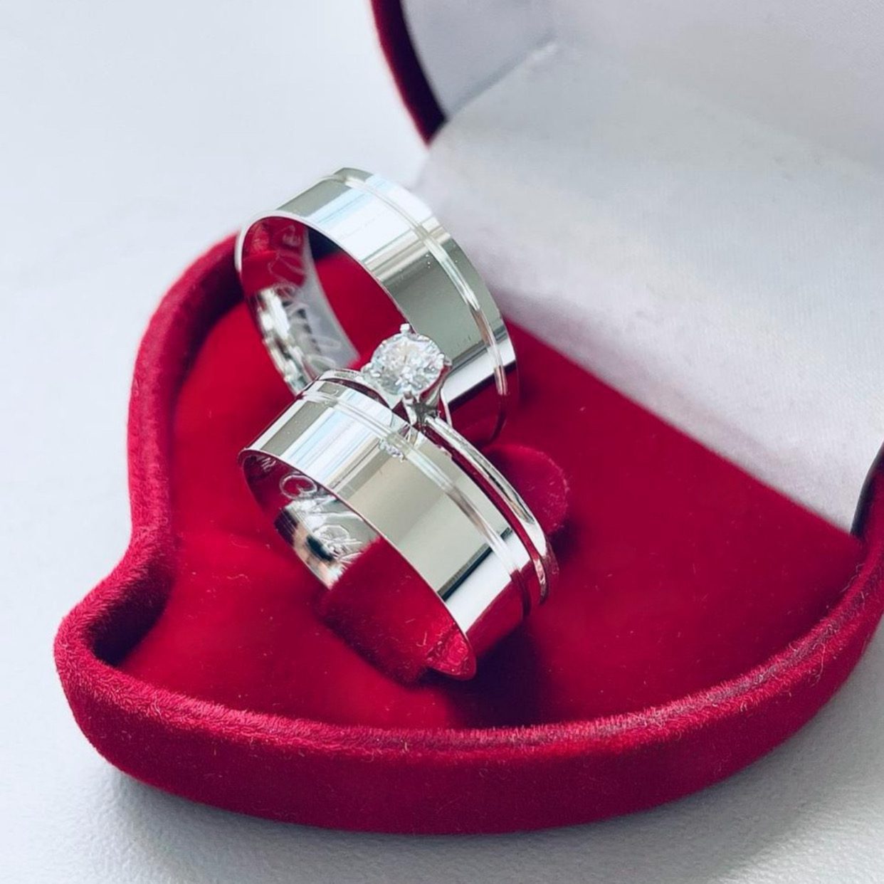 Alianças de Namoro 7mm em Prata 950 | Modelo Julien | Liso com 1 Friso Lateral – Anel Solitário Opcional