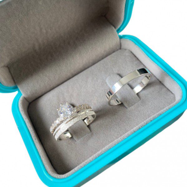Para tornar esse conjunto ainda mais especial, há a opção de incluir um anel solitário cravejado com pedra de zircônia, agregando um toque de sofisticação e romantismo à peça.