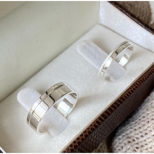 Alianças de Namoro em Prata 950 | Modelo Nádia | 3mm e 5mm | Reto Semi Anatômico
