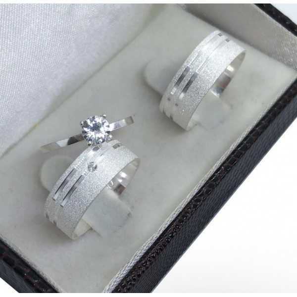 Esse modelo é ideal para casais que desejam alianças sofisticadas, com um brilho especial e um anel solitário incluso, tornando o momento ainda mais inesquecível.