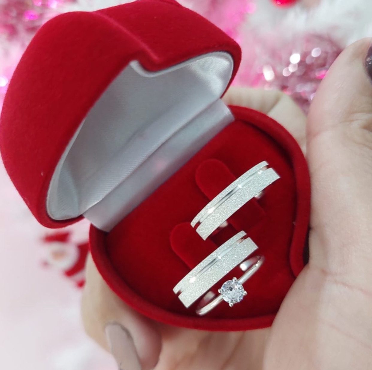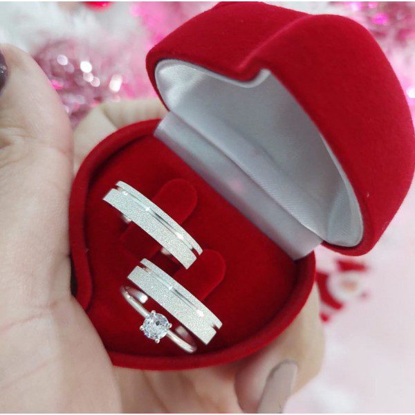 Alianças de Namoro 5mm em Prata 950 | Modelo Victoria | Diamantado com 1 Friso Lateral | Anel Solitário Incluso
