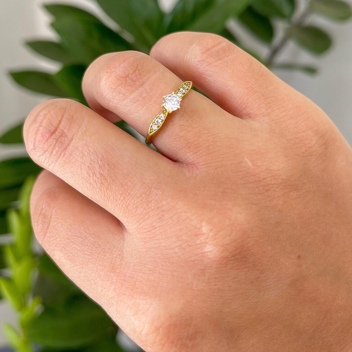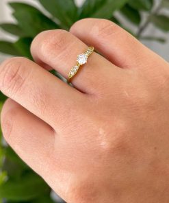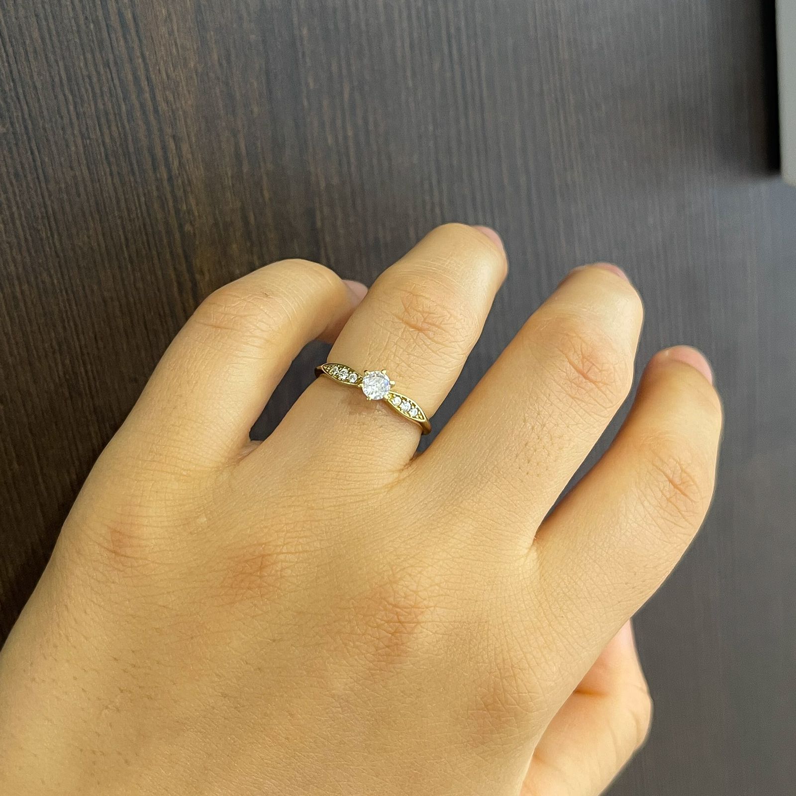 • 1 anel solitário com detalhes laterais cravejados.